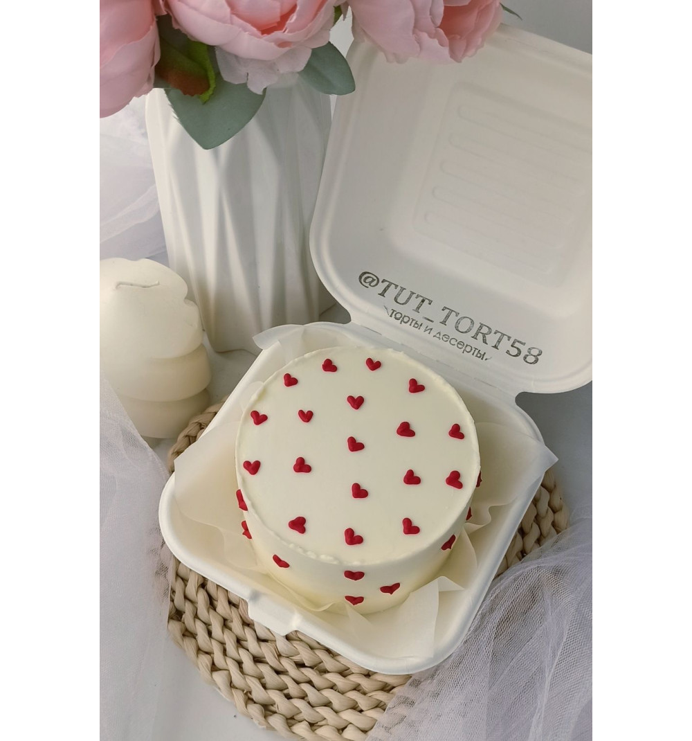 Бенто-торт с сердечками — нежный мини-торт для одного-двух человек, оформленный в романтичном стиле